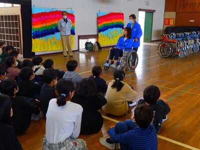 4年生は昨日、市川市社会福祉協議会より講師の先生を招いて、ブラインドマスクと車いすの体験を行いました。
