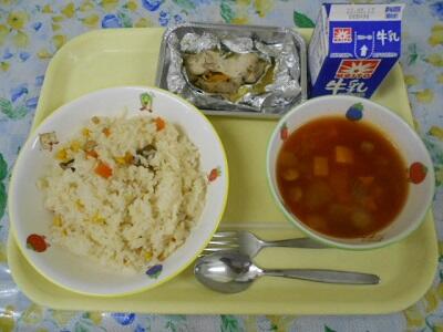 5月6日(金)の給食 投稿日時 : 2022/05/06 編集長 ~今日の給食~ コーンピラフ、チキンホイル巻き、ミネストローネ、牛乳 ~栄養価~ エネルギー:647kcal たんぱく質:24.8g 脂質:22.5g カルシウム:259mg 食物繊維:2.9g 食塩相当量:2.6g ~食材情報~ にんじん:徳島県 玉ねぎ:千葉県 じゃがいも:鹿児島県 にんにく:青森県 いんげん:北海道十勝 しめじ:福岡県 鶏肉:岩手県 マッシュルーム:国産 米:福島県会津 牛乳:千葉県他