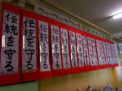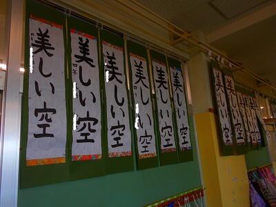 各学年、書初めの学習が終わり、教室前の廊下には頑張って書き上げた力作が掲示されています。