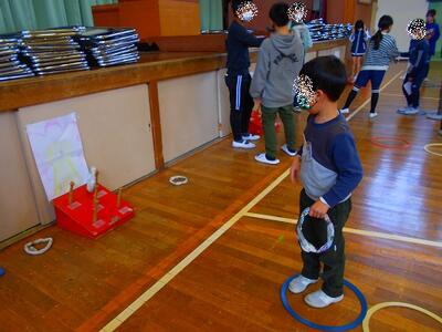 輪投げの様子。なんと輪投げの輪は手作りです。