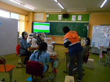 3組では5,6年生が家庭科の時間にミシンを使って布を縫う練習をしました。