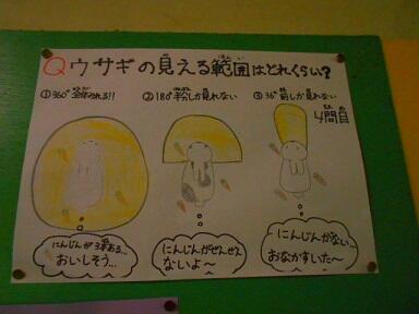 ウサギクイズ(飼育委員会) 投稿日時 : 2024/02/20 百合台小学校管理者 2月13日(火)~16日(金)まで飼育委員会が企画した「ウサギクイズ」という企画が行われました。校内や飼育小屋などいろいろな場所に全部で7問のクイズが貼り出されて、子どもたちはクイズの場所を探しながら、見つけるとクイズに答えていました。百合台小の子どもたちは、飼育委員を中心にみんなでウサギをかわいがって育てています。命の尊さや大切さにも気づいてもらえたらと思います。