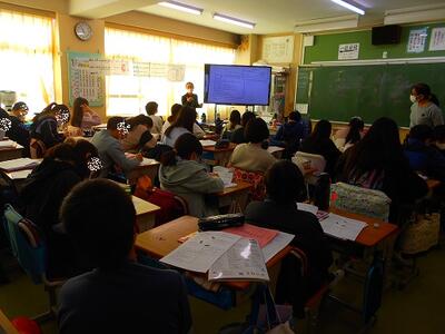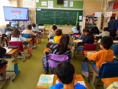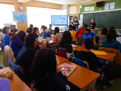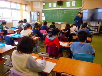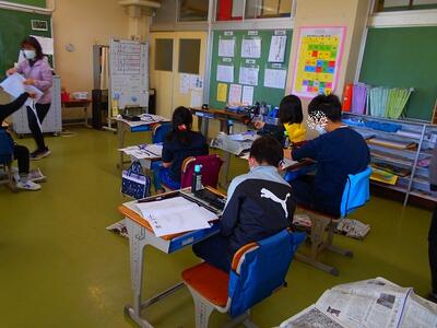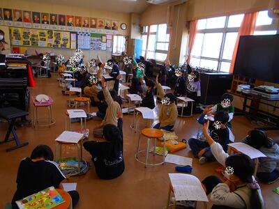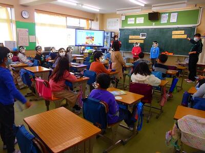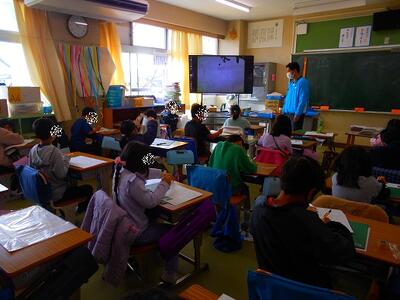 外国語活動ではたくさんしゃべって、英語に慣れるような学習を進めています。