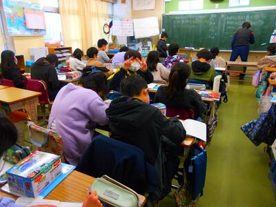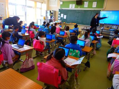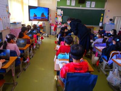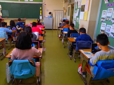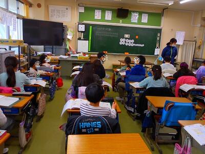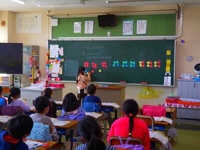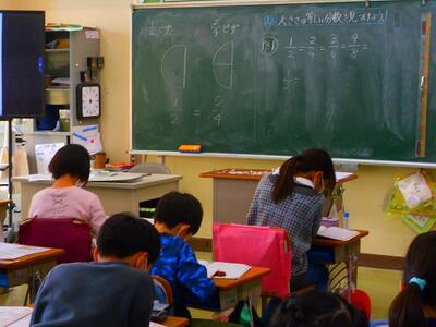 算数はクラスを2分割し2人の教員で少人数授業を行っています。
