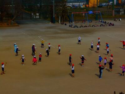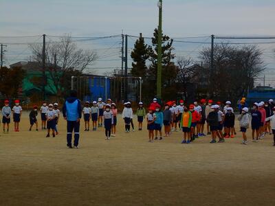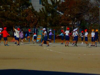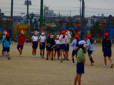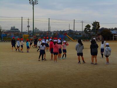 体育の学習。寒い中でも自分のペースでランニングをしました。