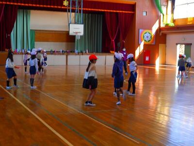 長縄大会に向けて、交流学年の5年生と一緒に練習をしました。