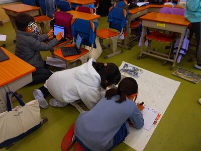 総合的な学習の時間には、頑張って調べた市川のことをみんなに伝えるために、発表の準備を協力して行いました。