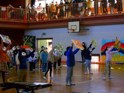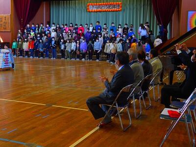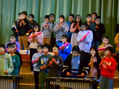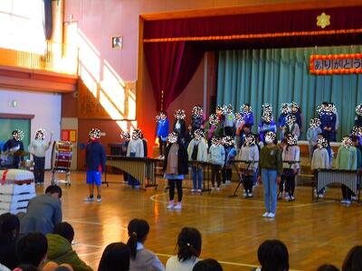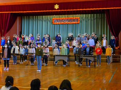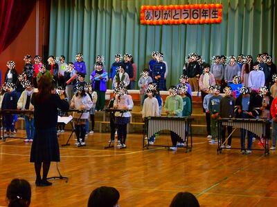 各学年の発表をずっと見ていた6年生からも、会を開いてもらったお礼の気持ちも込めて、最後の雄姿を見せてくれました。全員で「あとひとつだけ」を合奏しました。さすが6年生と思える発表でした。