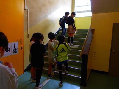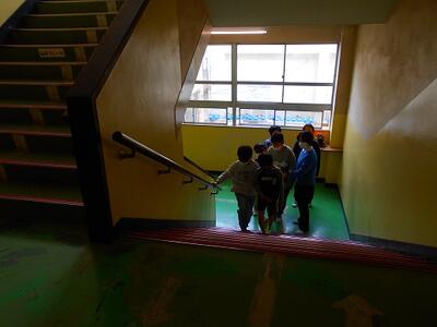 実際に2人組になって、ブラインドマスクを着けて介助体験を交代でしました。普段歩いている廊下や階段がこんなにも恐ろしい場所だったことが実感できたようです。