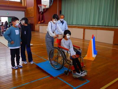 4年生は昨日、市川市社会福祉協議会より講師の先生を招いて、ブラインドマスクと車いすの体験を行いました。