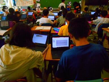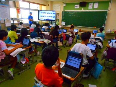 社会科と総合的な学習の横断的な学習で、「お米」について調べていました。5年生ともなると、タブレットの操作がとても上手になってきています。