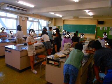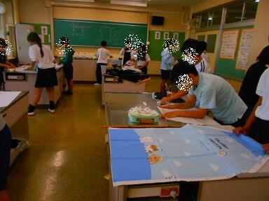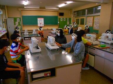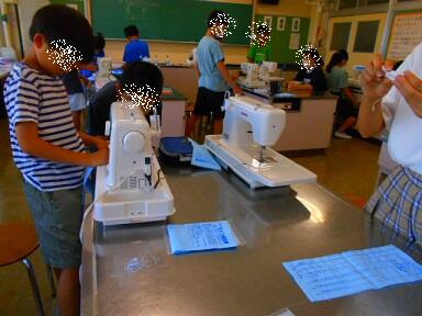 家庭科の時間には、ミシンの学習をしました。ミシンの仕組み、使い方を覚えたら、実際にミシンを使って「エプロンづくり」に挑戦です。