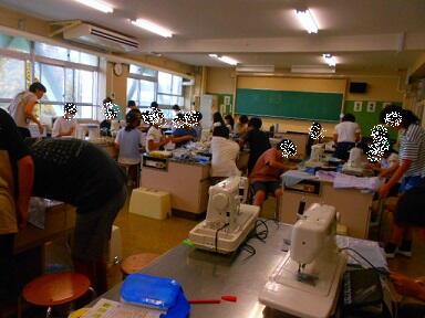 家庭科の学習では、ミシンを使ってトートバッグを製作しています。