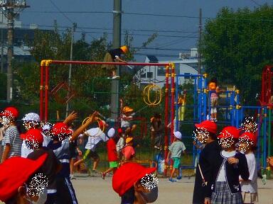 すこやかタイムの様子です。すこやかタイムは毎週水曜日の昼休みを掃除の時間まで延長し、子どもたちに思い切り外で体を動かしてほしくて設けていますが、9月は短縮日課があったり、暑さ指数が高すぎたりしてなかなか外で遊べませんでした。先週の水曜日は、やっと暑さ指数が既定の数値以下だったので、遊ぶことができました。