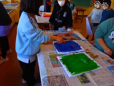 図工では紙版画に挑戦しました。