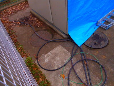 電柱からケーブルを引いて、学校のキュービクルまで直接電気を流してもらいます。