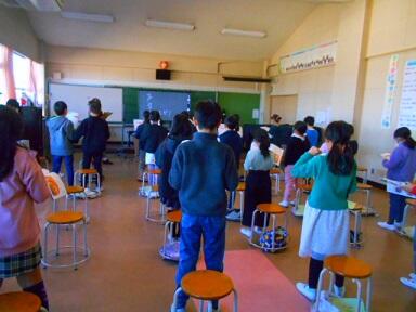 国語の学習では、「かさこ地蔵」の音読の練習をグループで行いました。