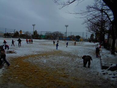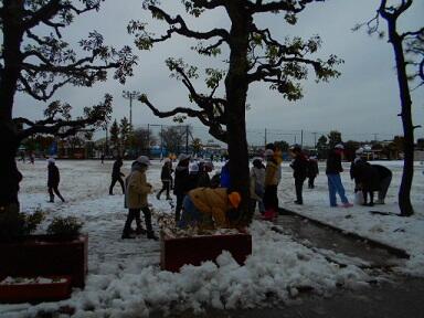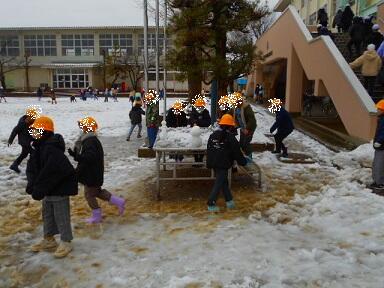 雪の影響で本日は多くの児童が欠席や遅刻となっています。(書類上は欠席、遅刻扱いにはしません)登校した児童につきましては通常通りとはいきませんが、学習を進めていきたいと思います。久しぶりの雪でしたので、短い時間ではありますが雪遊びをしに校庭に子どもたちが出てきました。
