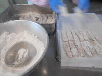 ↓「いわしのかば焼き」を作っているところです